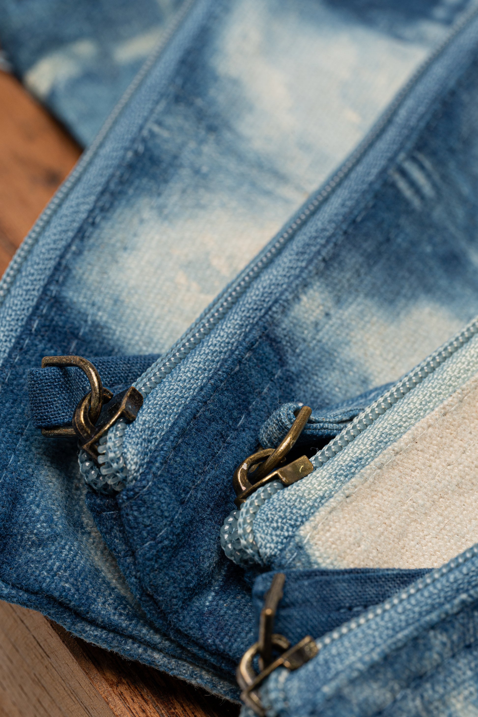 Dans cette collection, chaque article est teint à la main, rendant chaque pièce absolument unique. Vous pouvez sélectionner un style ou une ambiance, mais le motif et les nuances varient légèrement, car chaque création réagit différemment aux techniques d’indigo et du Shibori.