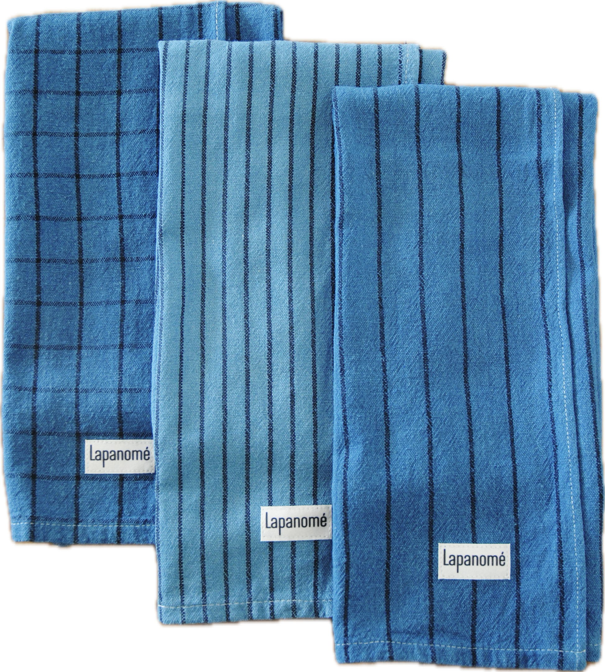 Torchons 100% Coton - Teint à la main à l'indigo - Artisanat français